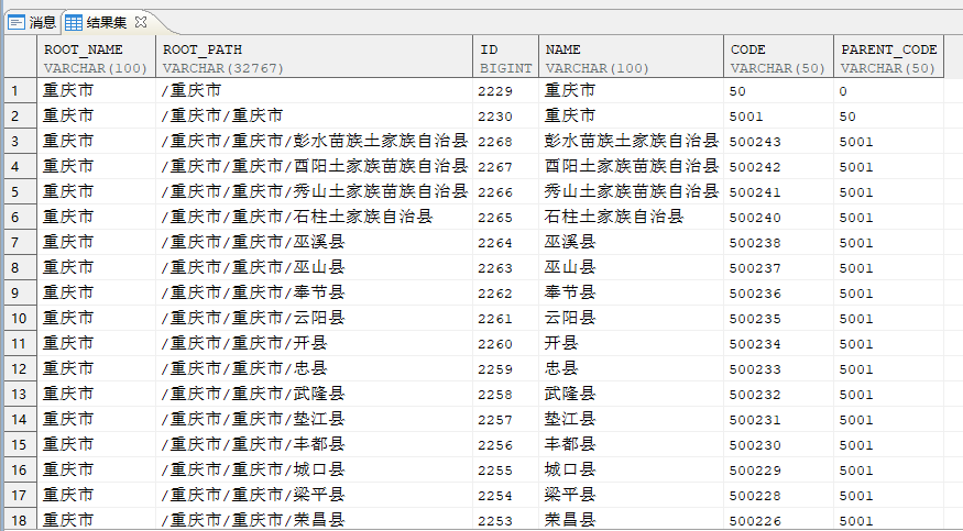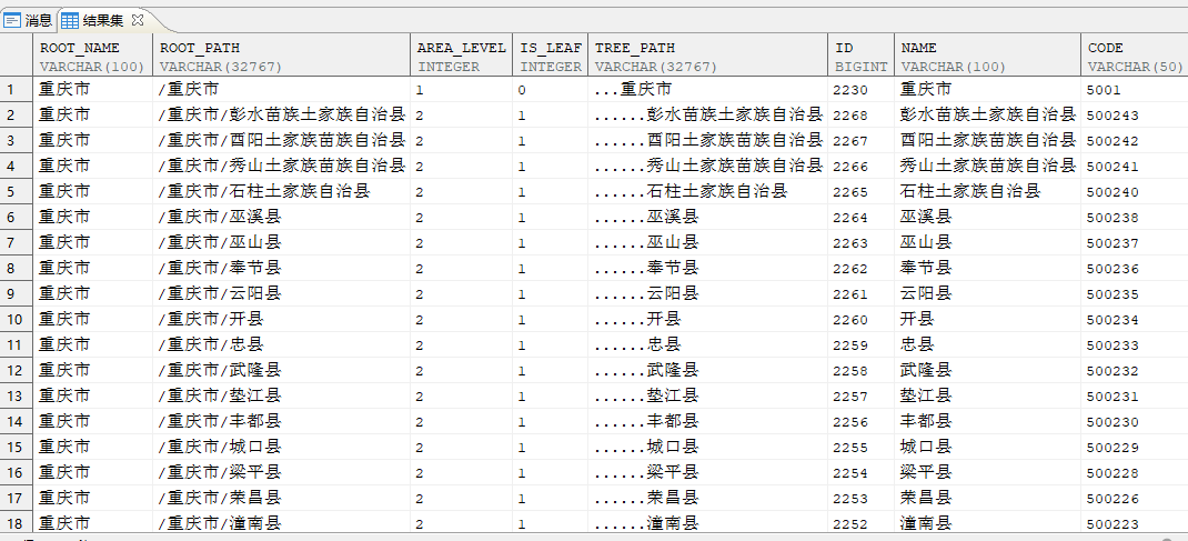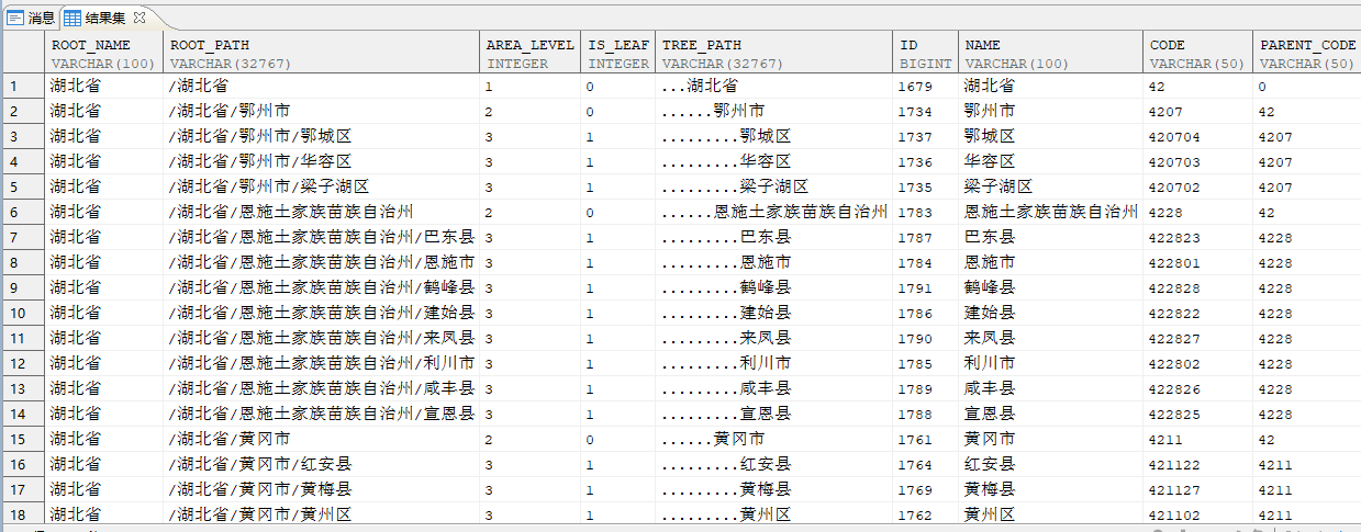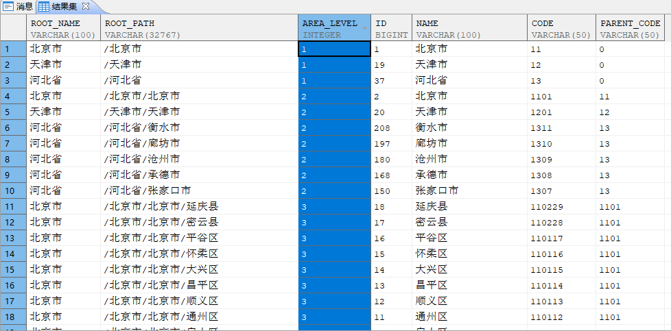 关于层次结构的数据集合,在日常生活中的很多地方都会碰到。比如家族关系、组织管理、行政区划、各类应用菜单中都有广泛运用。本文将通过全国行政区划应用中的一些常见用法举例对DMSQL的层次查询进行介绍。