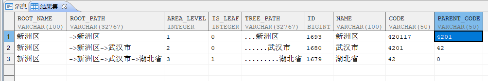 select i.*,1 as lev,'/'||i.name as ROOT_PATH FROM TEST.DICT_AREA i where i.parent_code=0 -- 初始结果行:相当于connect by子句中的start with功能