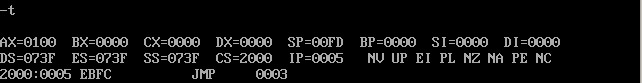 再用T命令逐一查看寄存器内容的变化: