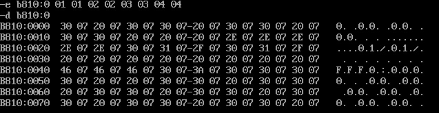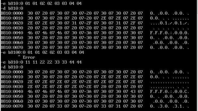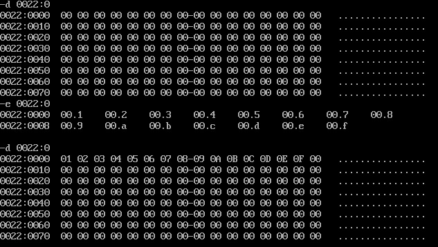先用d命令查看原先0022:0单元里面的内容,再进行修改