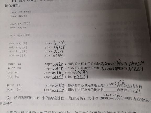 mov ax,2000 mov ss,ax 设置栈的段地址,用ax作为中转向段寄存器ss送入数据 mov sp,10 设置栈顶的偏移地址,所以sp=0010H