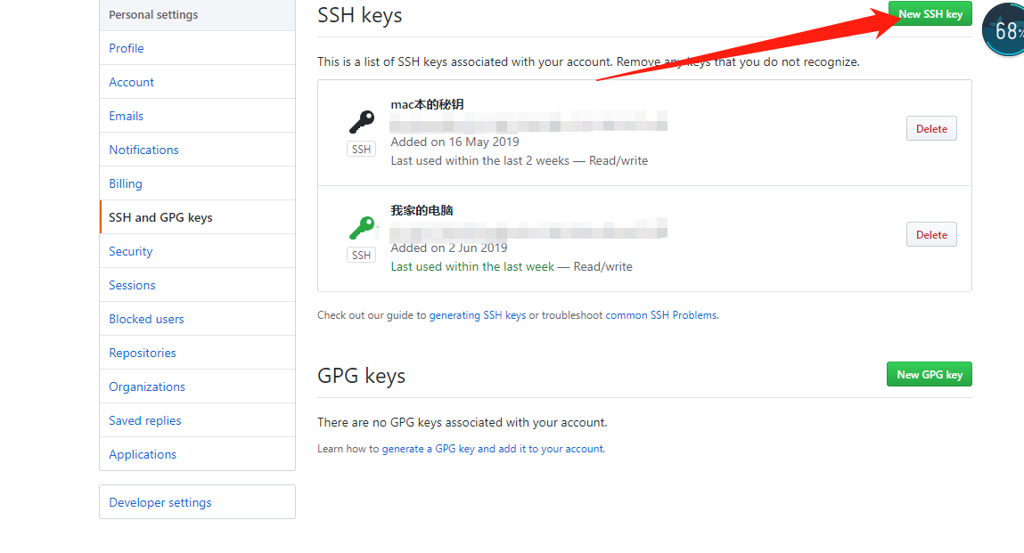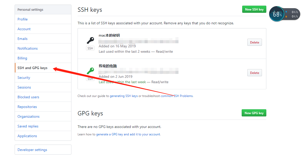 输入 cat ~/.ssh/id_rsa.pub 查看 如下就成功了,然后复制这个