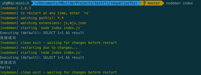 虽然执行完了,当我改变文件的时候会迅速重启。这样子不用一遍遍的去运行,加快了开发效率。