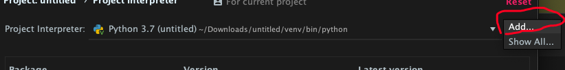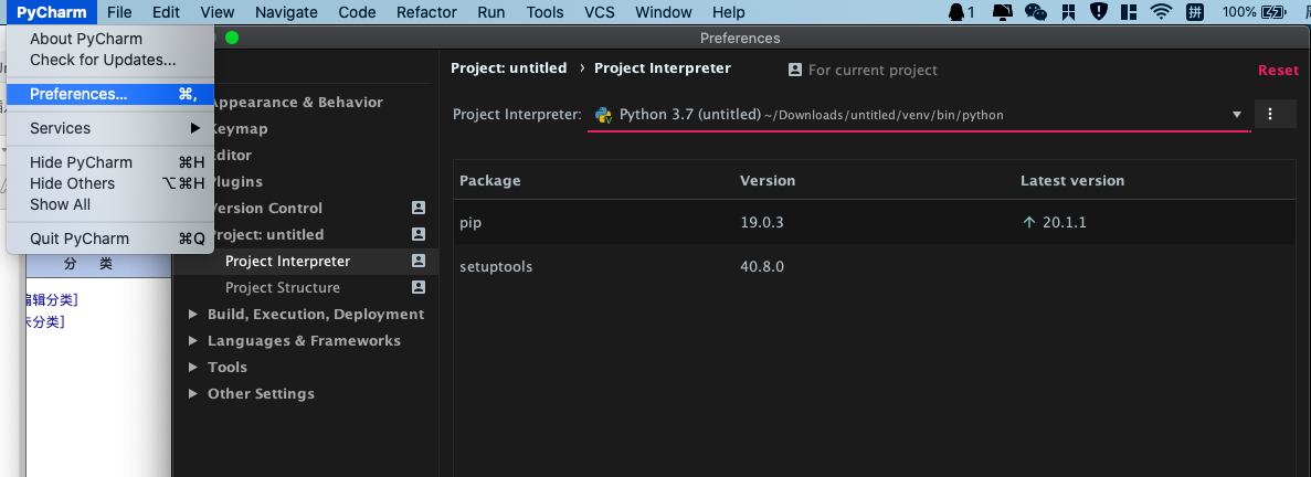 2.点击Preferences,并找到project Interpreter