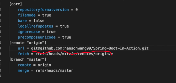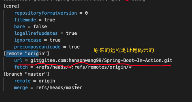 5.修改文件配置信息,可以将文件上传的路径由码云修改为Github,这样通过push命令,文件就上传到Github,而不是码云