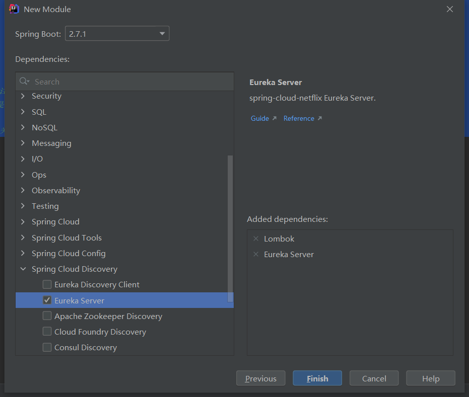 勾选上 Eureka Server 和 lombok