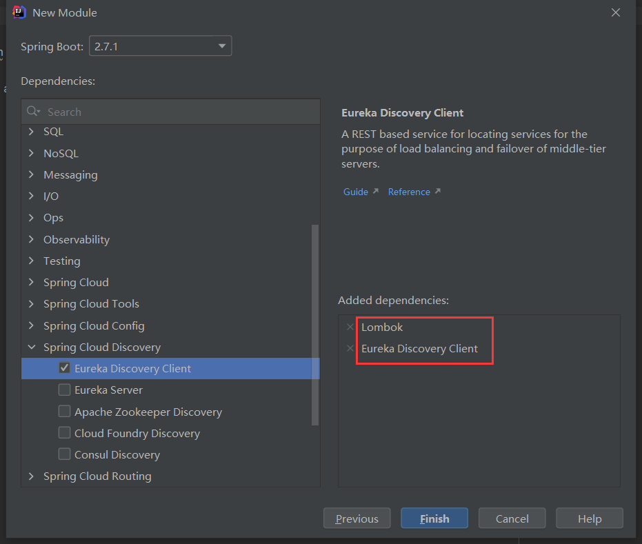 勾选上 Eureka Discovery Client 和 lombok