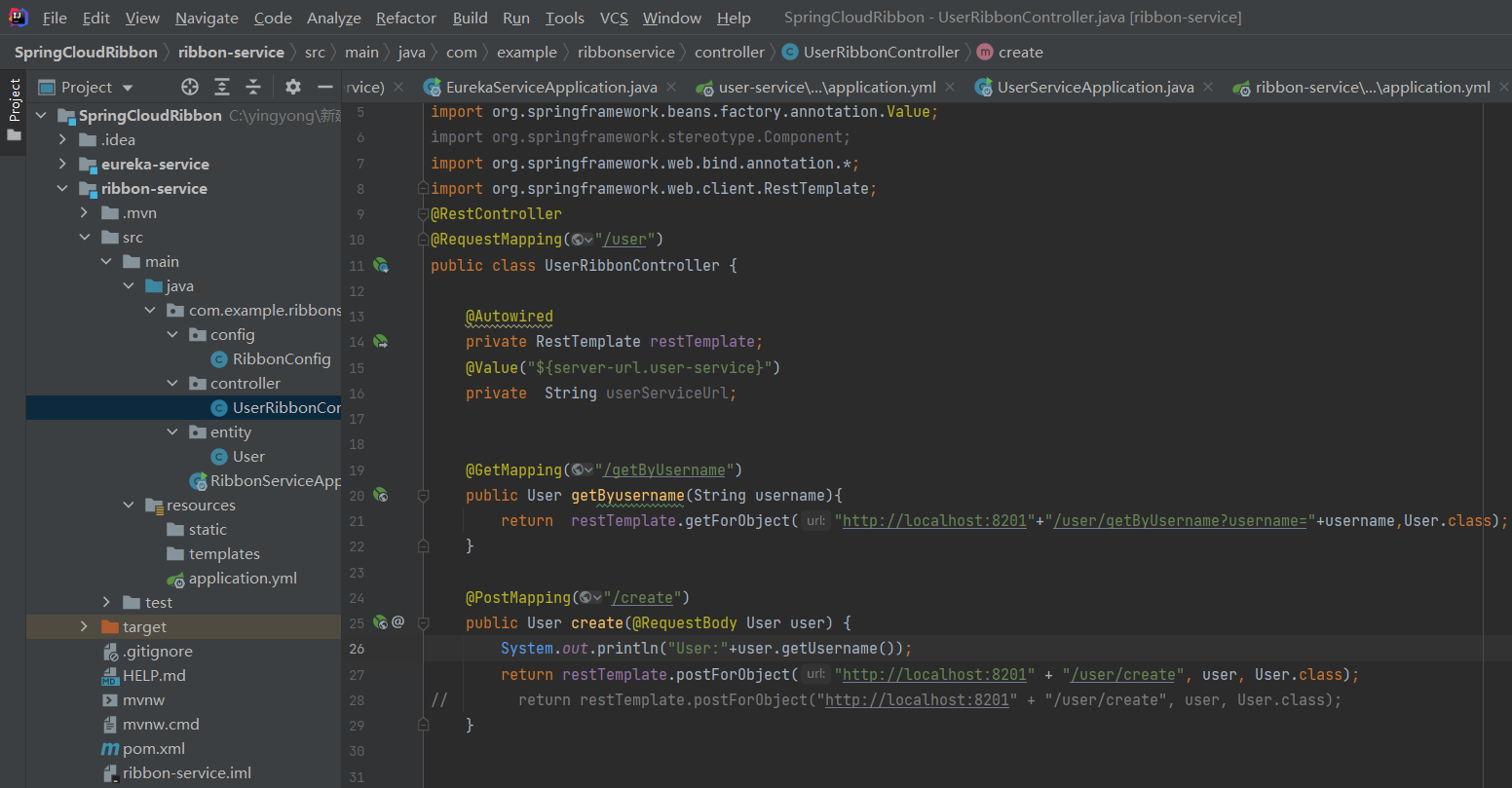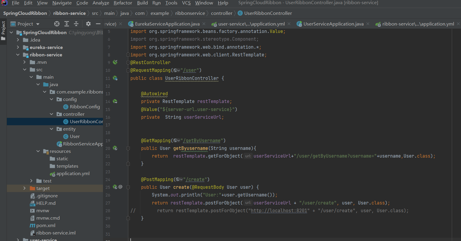在创建 ribbon-service 模块