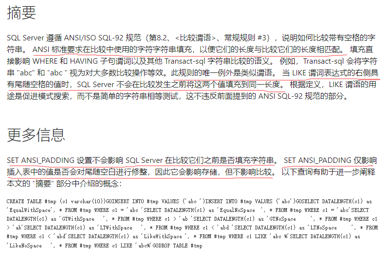 SQL Server 如何比较字符串和尾随空格