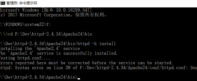 Define SRVROOT "F:/Dev/httpd-2.4.34/Apache24"