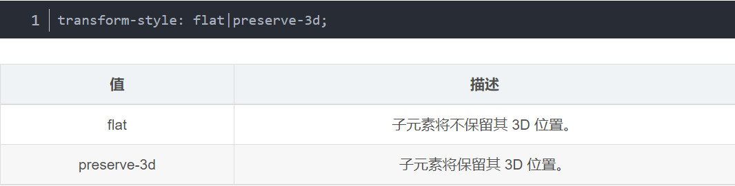 规定如何在 3D 空间中呈现被嵌套的元素。该属性必须与 transform属性一同使用。