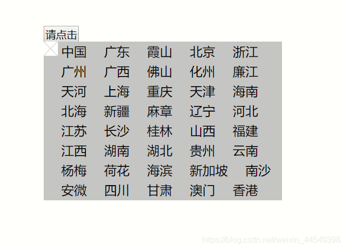 先到前面去在button标签ul标签和img标签后面都加上一个id里面在打上同样的类名,在到js里面输入一个页面加载事件一个大括号包裹起来,然后在获取前面几个的元素id,之后在让他如何显示然后关闭,第一个是获取button的一个点击按钮,第二个是获取ul标签里面的元素让他显示出来。相反的同样复制一份下来然后在获取到img的一个元素id的点击事件,下面在只改变分号里面的按钮。