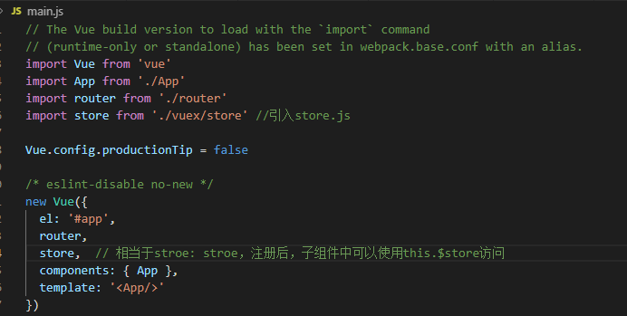 4.在main.js中将store对象与当前项目相关联