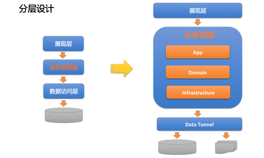 从业这么多年,接触过银行的应用,Apple的应用,eBay的应用和现在阿里的应用,虽然分属于不同的公司,使用了不同的架构,但有一个共同点就是都很复杂。导致复杂性的原因有很多,如果从架构的层面看,主要有两点,一个是架构设计过于复杂,层次太多能把人绕晕。另一个是根本就没架构,ServiceImpl作为上帝类包揽一切,一杆捅到DAO(就简单场景而言,这种Transaction Script也还凑合,至少实现上手都快),这种人为的复杂性导致系统越来越臃肿,越来越难维护,酱缸的老代码发出一阵阵恶臭,新来的同学,往往要捂着鼻子抠几天甚至几个月,才能理清系统和业务脉络,然后又一头扎进各种bug fix,业务修补的恶性循环中,暗无天日!