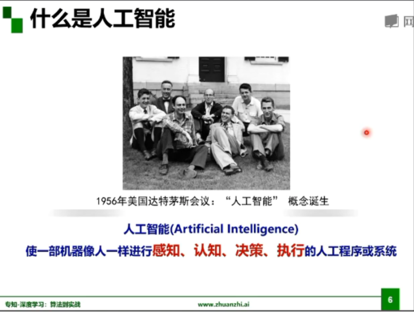 “人工智能”的概念诞生于1956年的达特茅斯会议。