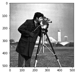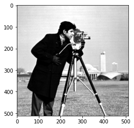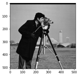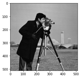 # Load an example image img = data.camera() plt.imshow(img, 'gray')