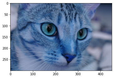 # Change RGB color to BGR for openCV BGR_cat = cat[:, :, ::-1] plt.imshow(BGR_cat)