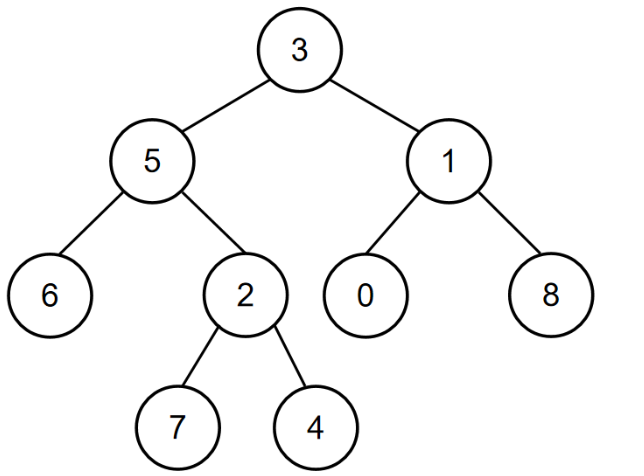 所以节点值为5和节点值为1的节点的最近公共祖先节点的节点值为3,所以对应的输出为3。