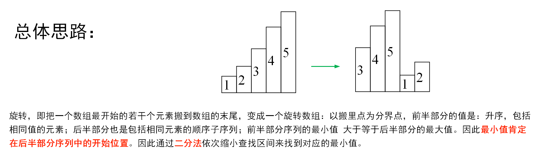 有一个长度为 n 的非降序数组,比如[1,2,3,4,5],将它进行旋转,即把一个数组最开始的若干个元素搬到数组的末尾,变成一个旋转数组,比如变成了[3,4,5,1,2],或者[4,5,1,2,3]这样的。请问,给定这样一个旋转数组,求数组中的最小值。