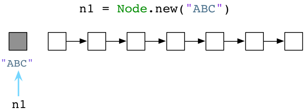 想象一下每个白色方格上都标着一个"未使用预创建对象"。当我们调用 Node.new ,Ruby只需取一个预创建对象给我们使用即可: