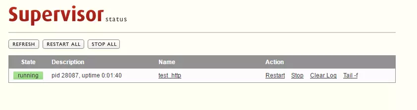 supervisor的管理可以用命令行工具(supervisorctl)或者web界面管理,如果一步步按上面步骤操作,那么web管理就可以正常使用了,这里单独介绍下supervisorctl命令工具: