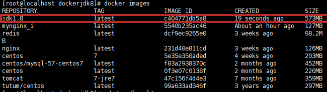 docker images # 可以看到多了一个 jdk1.8 镜像, 说明创建成功