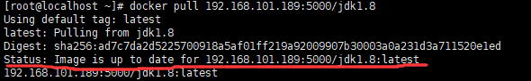 docker pull 192.168.101.189:5000/jdk1.8 # 可以发现,下载成功了,说明下载指令没有问题