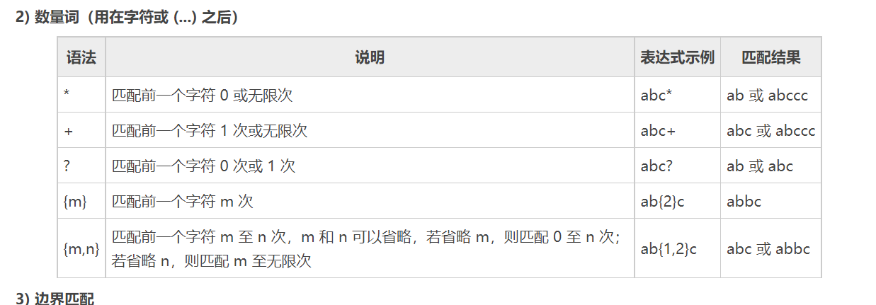 下面的表格中列举了构成正则表达式的一些语法规则及其含义。