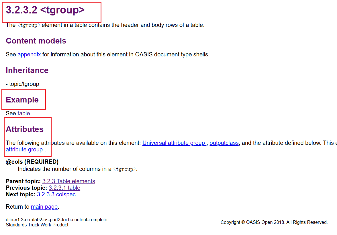 标记对的属性和属性作用可以看一个具体的例子,比如这个tgroup标记对:
