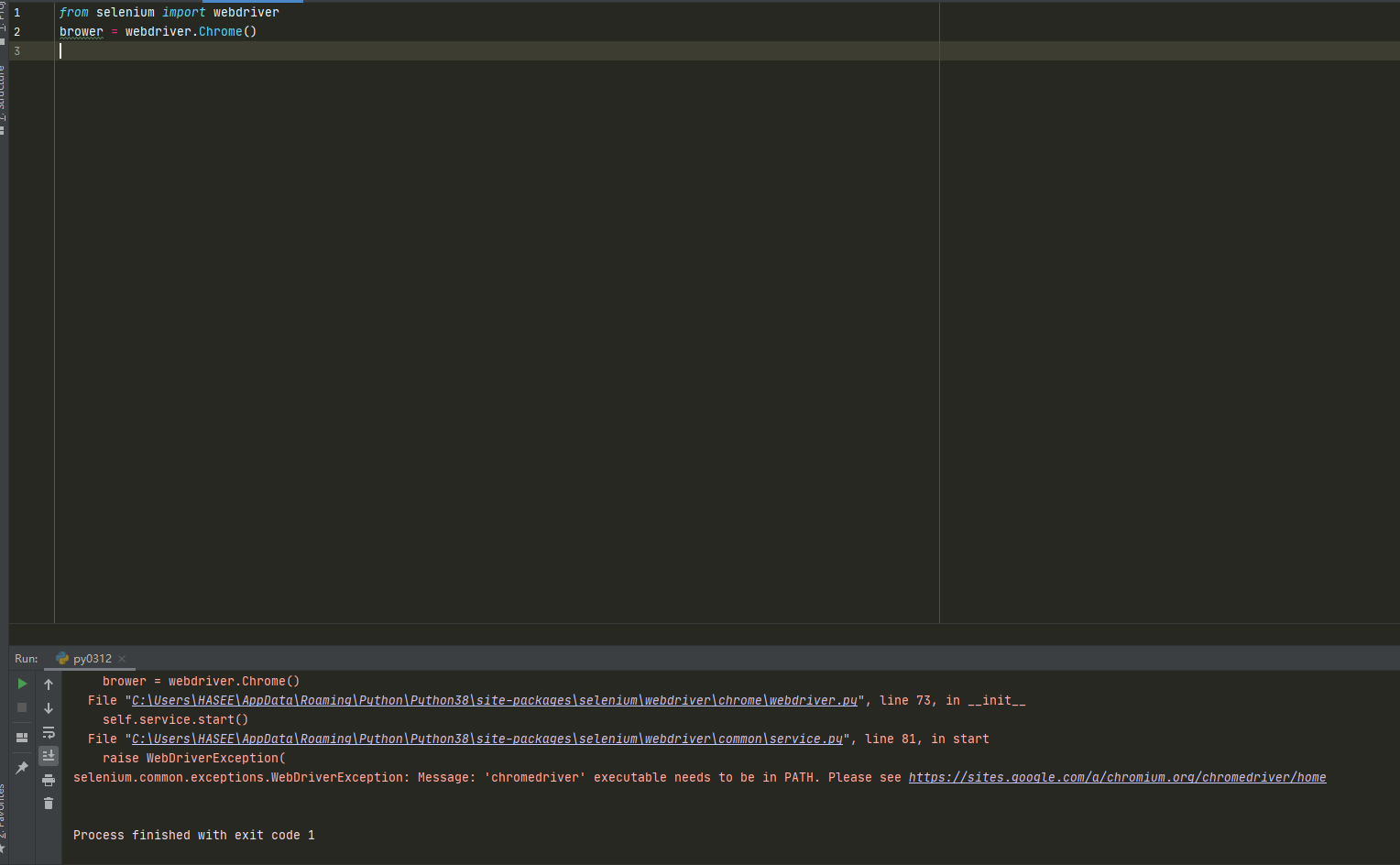 用神奇的度娘搜索了一下,各种解决方法都对我无用。最后我按照书上所说将chromeDriver.exe文件放到python的Scripts下解决了这个问题
