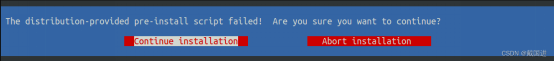 每次安装都会出现如下提示,实际上pre-install固定会失败的,目的就是为了让你知道你自己在干嘛,选择Continue installation