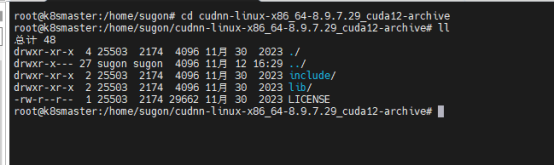Tar -xf cudnn-linux-x86_64-8.9.7.29_cuda12-archive.tar.xz解压出文件