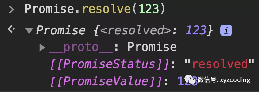 一个Promise实例包括一个status [[PromiseStatus]],以及一个value [[PromiseValue]]。在上述这个示例你可以看到[[PromiseStatus]]是pending,[[PromiseValue]]是undefined。