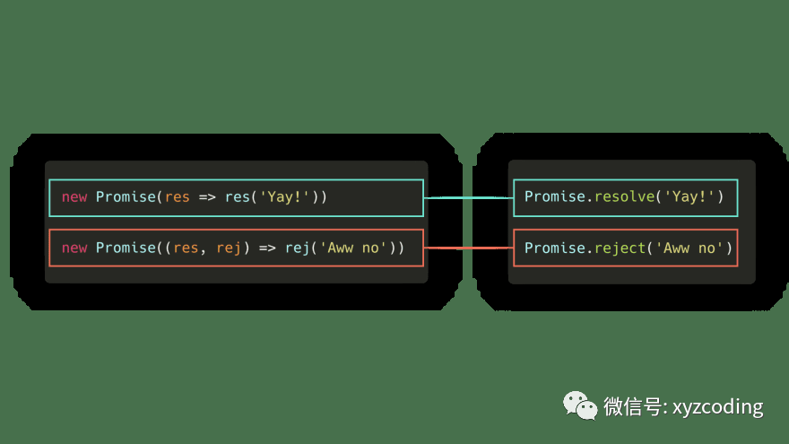 仅供参考,如果你知道一个promise始终要么是resolve或者reject,那么其实我们可以直接使用Promise.resolve或者Promise.reject方法,并且传入我们想要传入的值。