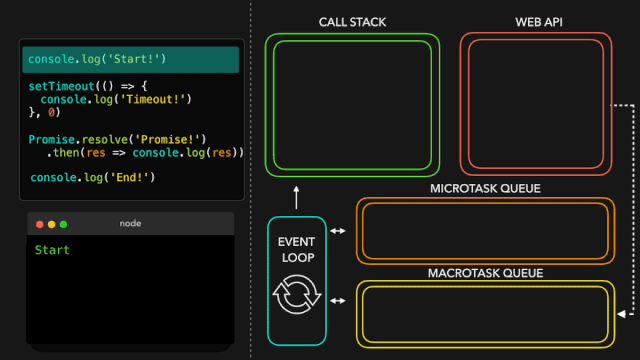 JS引擎看到调用堆栈是空的,所以它会再次检查microtask队列,查看是否还有任务在进行排队。发现没有,microtask队列也是是空的。