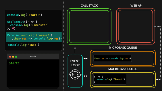首先我们可以看到打印出Start!,接下来打印出的却是End!而不是promise中的value。最后打印的是Promise!,这里面究竟发生了什么?