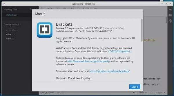 Brackets扩展也是用JavaScript编写的,还可以调用Node.js模块。与大多数在选项卡中显示打开文件的编辑器不同的是,Brackets具有显示在文件树上方的工作文件列表。
