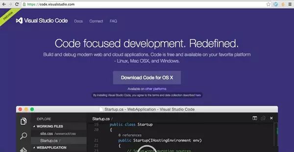 Visual Studio Code是一个免费的轻量级编辑器和IDE,用于Node.js和ASP.Net 开发。它结合了Microsoft技术,例如TypeScript编译器、Roslyn .Net编译器和Atom使用的Electron shell。Visual Studio Code适用于Windows,MacOS和Linux平台。