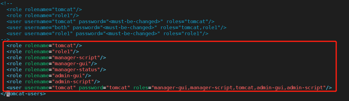 <user username="tomcat" password="tomcat" roles="manager-gui,manager-script,tomcat,admin-gui,admin-script"/>