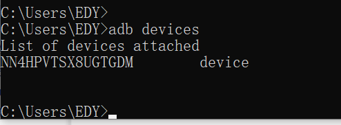 3.电脑上:进入cmd→输入 “adb devices”→手机上弹框点允许(即可通过adb来控制手机。device 设备 devices 多个设备)