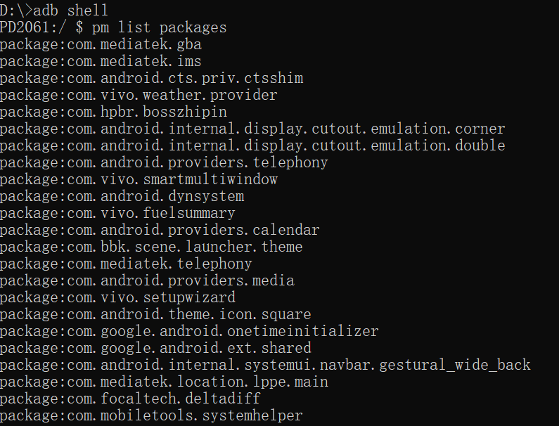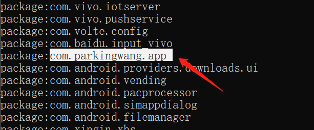 回车命令后,在手机上点开这个app,会出现以下三行内容,就能看到包名了。