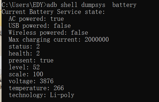 “adb shell dumpsys battery”