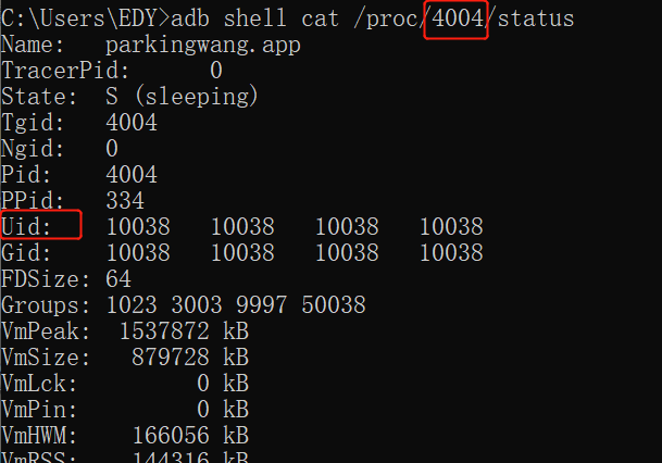 adb shell cat /proc/进程ID/status (注意:如果app关了,进程id就会变了)