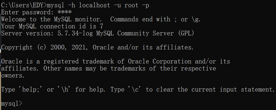 (-h 后是ip地址,-u后是用户,-p回车之后输入密码)