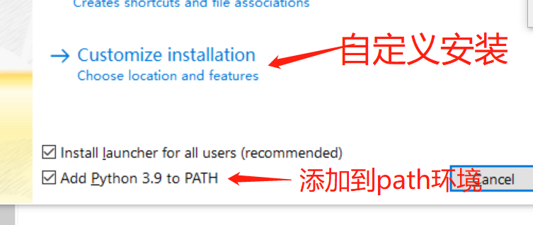 2.打开安装包,先勾选添加到path环境,再选择上面的自定义安装: