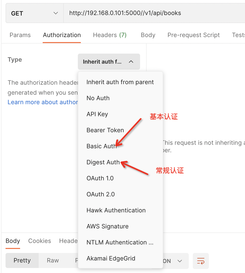 1.3 针对401和403在postman中认证(授权、鉴权)方式: