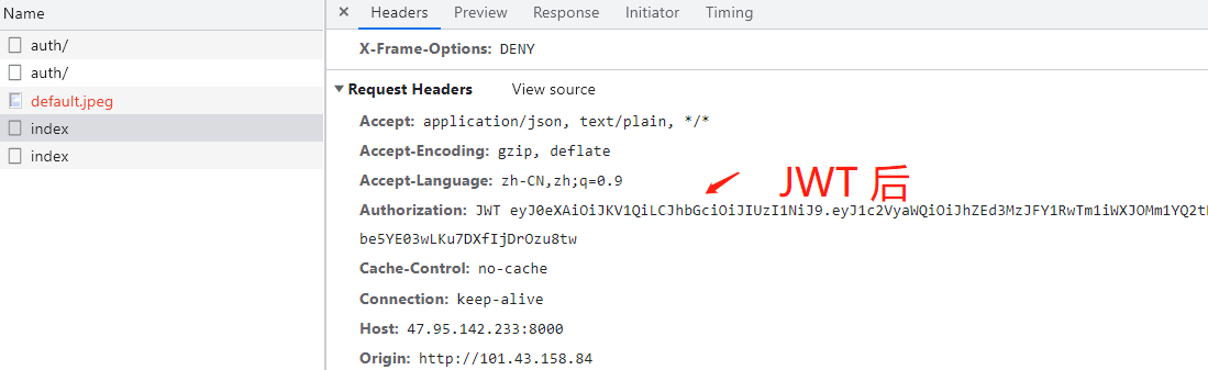 当访问一个页面时,请求头中带着token请求(Authorization的JWT后):