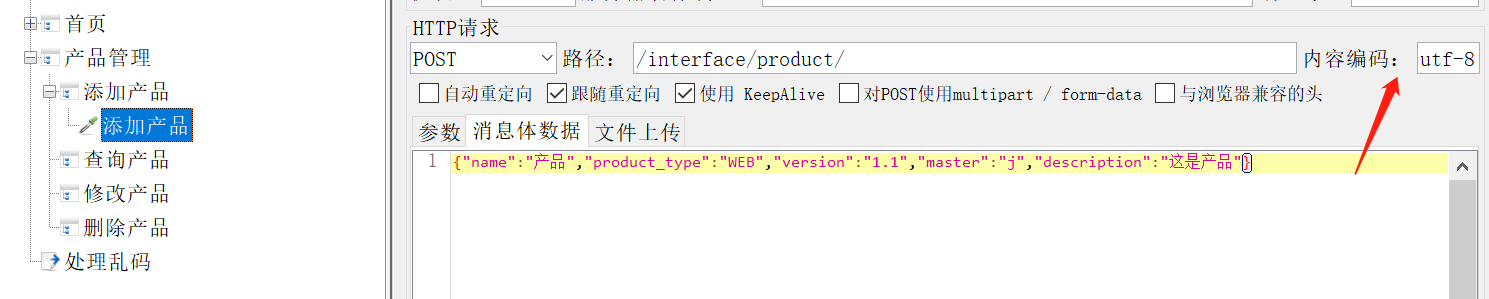 如果请求参数中有中文,记得要写内容编码“utf-8”