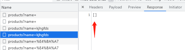 当我们搜索一个不存在的产品时,它的响应结果为空: