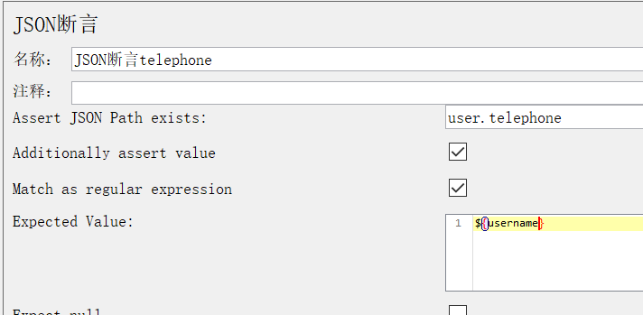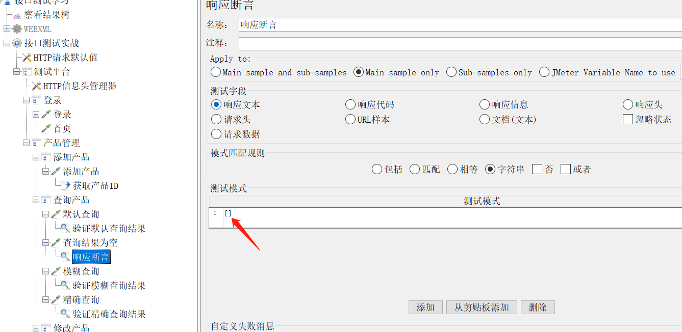 这时我们用到的断言是 响应断言 断言响应结果中包含某个字符: